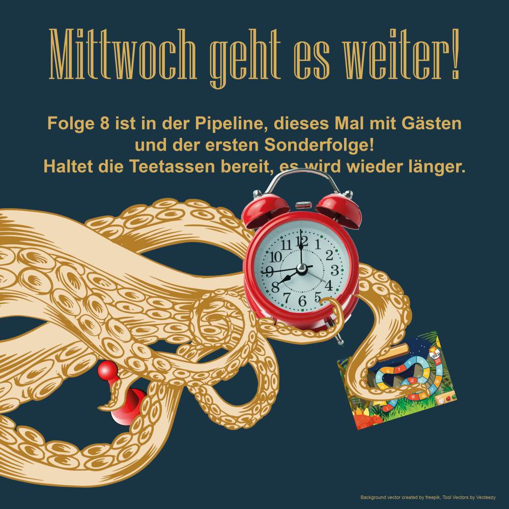 Jubiläääääum und noch dazu Weihnachtsspecial im Sommer! Das kann ja nur crazy werden. Und was soll ich sagen? Diese Folge ist auf keinen Fall mehr Schein als Sein, denn Lovecraft lädt ein. In der gruseligen Kultistenhöhle erwartet uns ein recyceltes Monster nebst der Gang Kuldidos. Die haben Lovecrafts Handbuch für das heimelige Wohnen mitgenommen – direkt aus Cthulhus Wartezimmer zur allumfassenden Wurzelbehandlung. Wem das noch nicht genug ist, der bekommt Butter bei das Necronomicon, denn Lovecraft ist mit Flip-Flops unterwegs zu den Lebkuchen – ist ja das Weihnachtsspecial, gell? Wir erkennen, dass Leder auch nur Haut ist und Günther läuft aus und davon, denn der letzte macht den Abwasch. Na, klingt das nicht vielversprechend? Dann viel Spaß mit der neuen Folge!